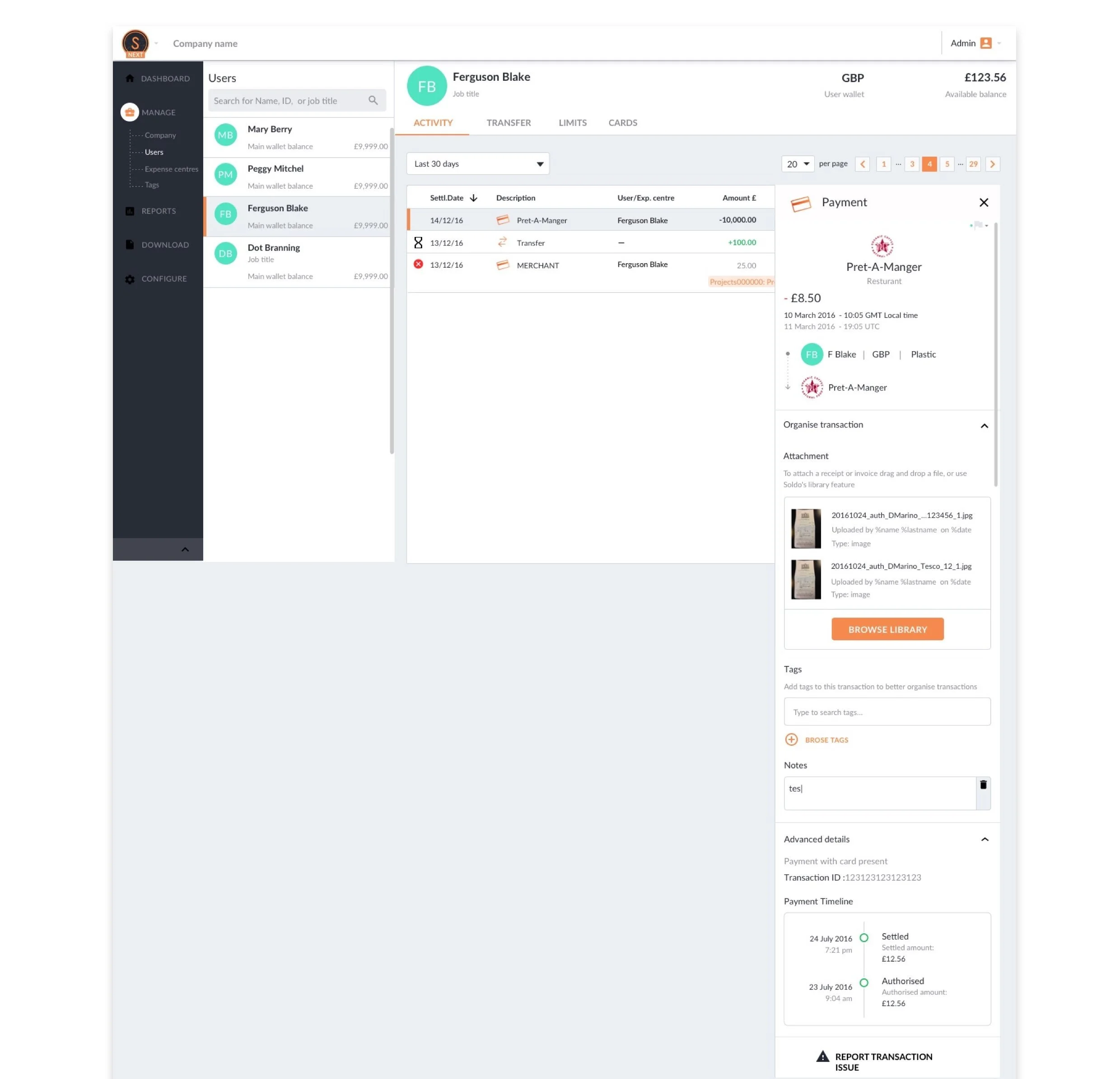 I developed concepts and solutions to create innovative products for managing personal and business finances. With the smartest financial and payments technology Soldo seamlessly attaches receipts, tags and categorises all spending made using a virtual or plastic Mastercard. It also integrates to most accounting software. This can be managed on an intuitive admin dashboard, that works seamlessly with mobile apps for employees and personal use.