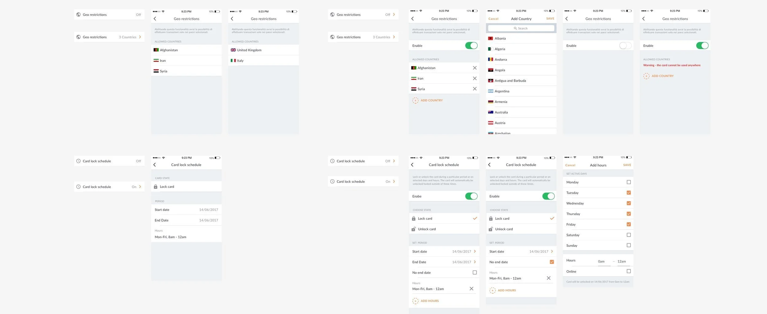 We explored looking at how to convey to the user the state of the restriction and whether they had the ability to change it. For the first design we used a combination of text and the toggle icon. Our hypothesis is that by using text the user would realise that it is not possible to change the state. In the second design we showed this by making the element slightly transparent.