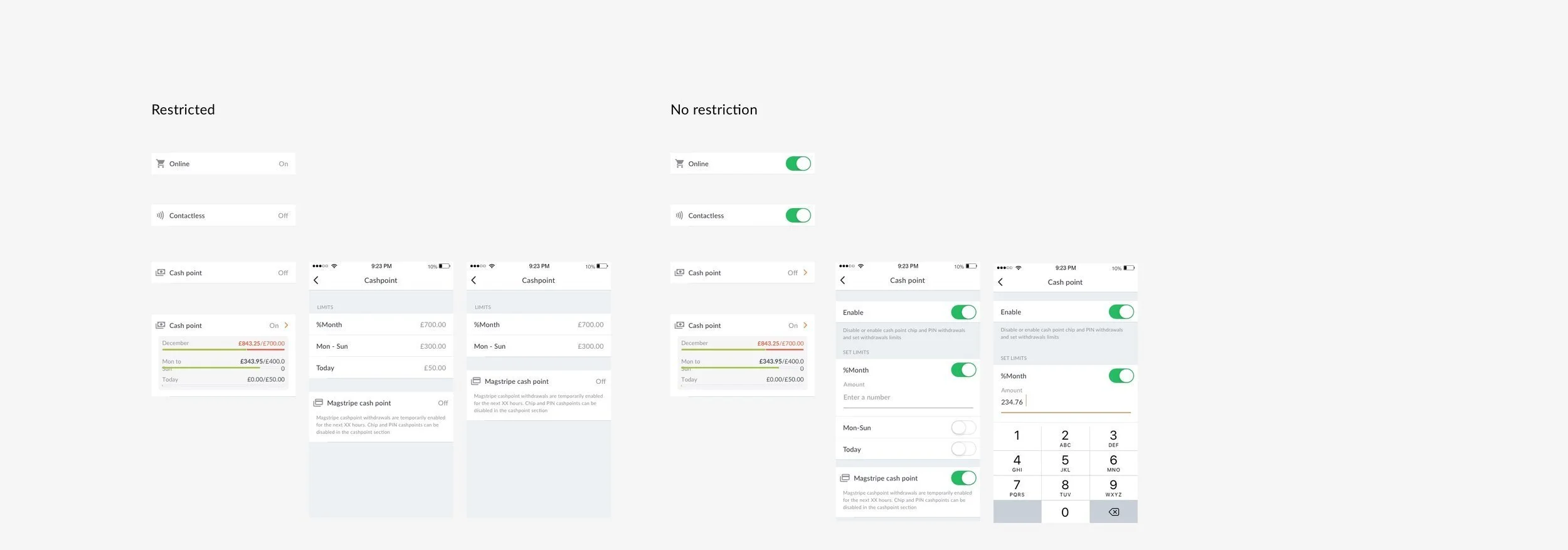 Permissions are used to control and restrict spending activities. The current structure was built for then Soldo family product, how ever they are not refined enough for business use. The employee app can edit these permissions, similarly to the parent app, but it can also be controlled from the admin dashboard. This creates a conflict, the admin Dashboard and the employee app need to work cohesively, allowing the admin dashboard to be able to set controls.